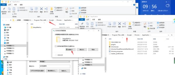 接着,我们在电脑D盘或其他硬盘当中,创建与刚才看到的起始位置相同的目录,然后将C盘下谷歌浏览器安装目录下的所有文件都剪切到电脑D盘或其他硬盘当中,需要管理员权限的部分,直接点击【继续】按钮。