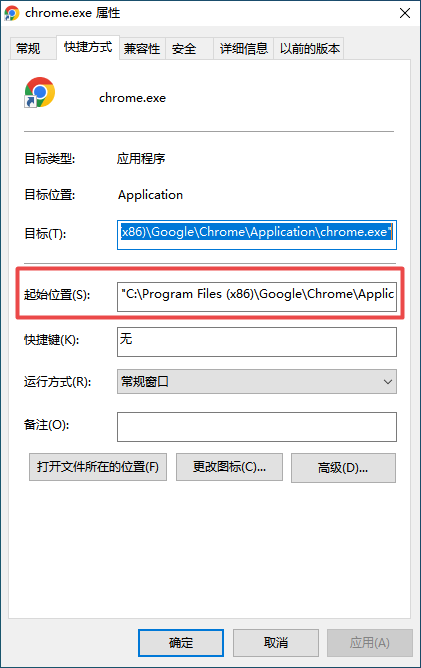 首先,在电脑桌面上找到谷歌浏览器的快捷方式,然后按下鼠标右键,选择【属性】选项。接着在弹出的属性窗口的【起始位置】上,我们可以看到电脑谷歌浏览器的安装目录,默认是安装在电脑C盘的。