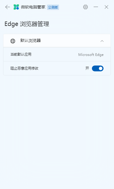 至于微软电脑管家是否可以修改默认浏览器的问题,财神爷站小编也进行了测试;发现在微软电脑管家中是可以修改默认浏览器的,但仅能将微软自家的【Microsoft?Edge浏览器】修改成默认浏览器。