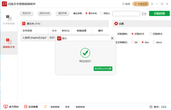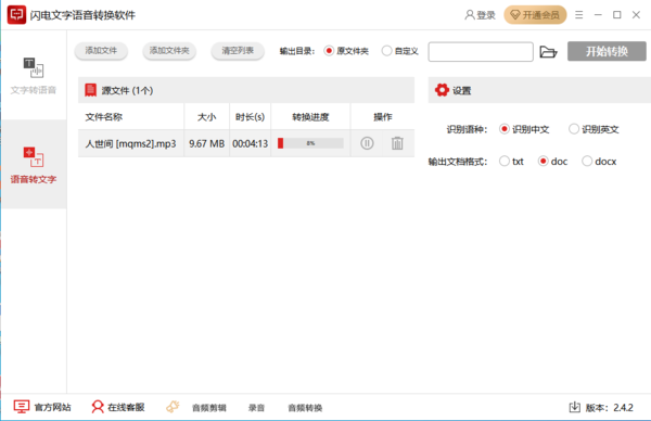 最后,如果是文件过大引起的闪电文字语音转换软件卡2%不动了的问题时,我们需要先排上上述的两种原因,然后耐心等待文件转换完成即可,因为文件转换也是需要一定时间的。