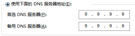 3、找到Internet协议版本4(TCP/IPV4)并双击,勾选使用下面的DNS服务器地址即可进行修改,将9.9.9.9填入到首选和备用服务器当中即可。