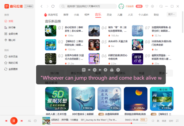 介绍完了PC电脑版喜马拉雅软件能够看字幕的内容后,那么我们到底如何看字幕呢?继续往下看吧。