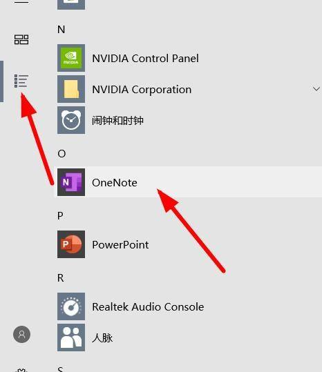 第二步:然后在开始面板中点击所有应用找到OneNote点击打开(如图所示)。