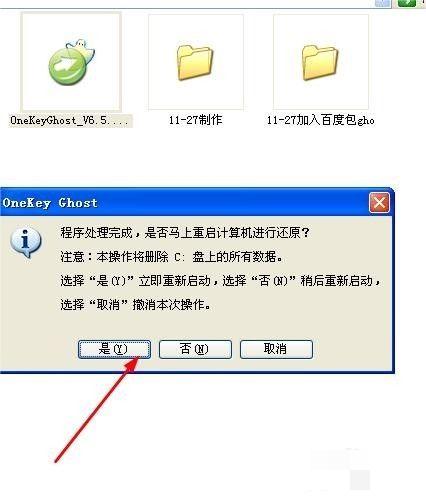 点击【确定】以后,就会弹出马上重启计算机还原系统的提示,如果确定c盘重要文件已经备份完毕,就可以点击【是】重启安装ghost系统了。