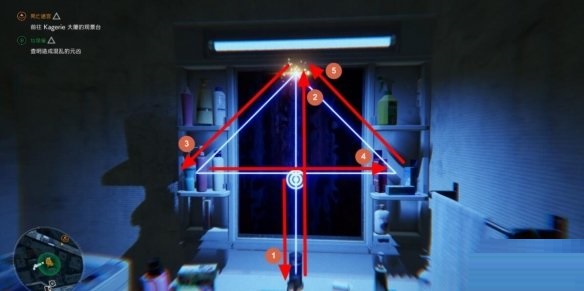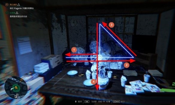 在房间中对准不停变化的茶几按照下图所示顺序和方向结印使恶灵显形。