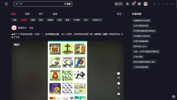 介绍完了抖音电脑版上玩最近爆火的羊了个羊小游戏的内容后,那么抖音电脑版上可以玩小程序游戏吗,继续往下看吧。