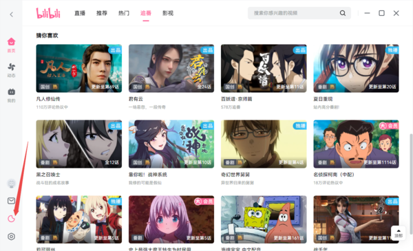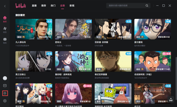 根据财神爷站小编的亲自使用经验来看,哔哩哔哩电脑版是不能够更换皮肤的,但是我们可以让软件在深色模式和浅色模式之间进行切换,这样即便是夜间只开台灯用电脑追番,也能够获得很好的视觉体验效果。我们只需要点击哔哩哔哩电脑版左侧列表中的【月亮】图标,就可以将浅色模式下的软件更换成深色模式了。