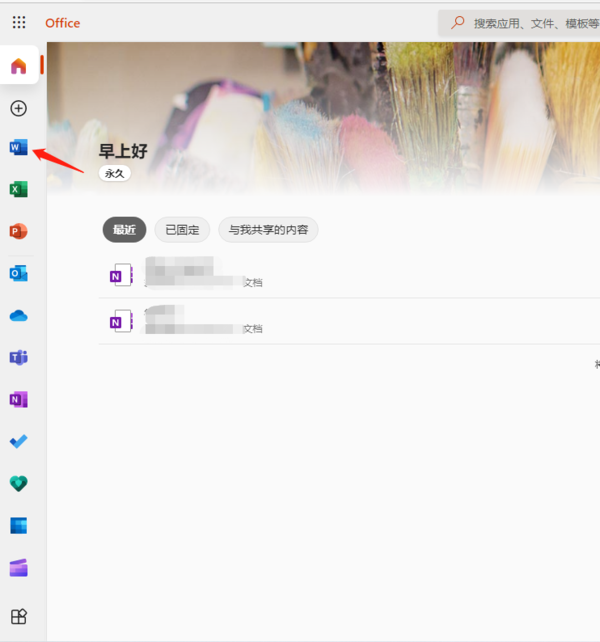 登录之后,进入网页版office页面,接着我们在左侧功能栏找到并点击【word】图标。