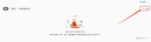如果我们想打开已有的文档,亦可点击页面右侧【上载】,从我们的电脑中上传并打开文档,也非常方便。