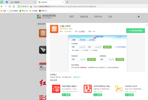 方法二:插件抢票。我们在360浏览器的插件管理功能中,添加“订票小助手”。在该插件中,它能按照我们的意愿,帮我们快速抢到相应的高铁票。