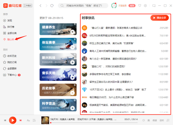 既然我们在上文提到了随心听模块;接下来,财神爷站小编就和大家在此一同探讨一下,喜马拉雅的随心听模块还包含哪些内容。