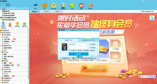 1、启动电脑上的边锋游戏大厅软件,然后登录到自己的账号当中。