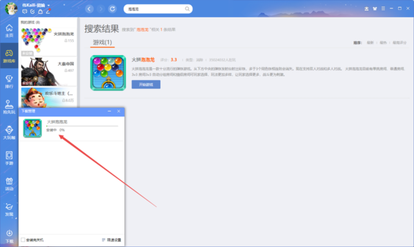 3、然后软件就会开始下载火拼泡泡龙游戏,游戏下载后会进行安装,此时我们都耐心等待一下。