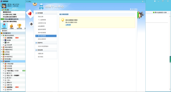 最后,是使用体验方面,茶苑游戏大厅的使用体验更好一些,因为边锋游戏大厅在点击玩家中心没反应。而茶苑游戏大厅的玩家中心虽然也是处于维护中的状态,但是点击后就有反应。同时,点击边锋游戏大厅个人中心中的帐号管理下方的选项,有的点击也是没反应的状态。