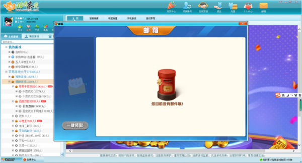 首先,是软件界面设计方面,茶苑游戏大厅与边锋游戏大厅相比,软件左侧列表中的整体的字体设计要更大一些,整体看起来更加的清晰直观,游戏选择起来也是更加的明显。