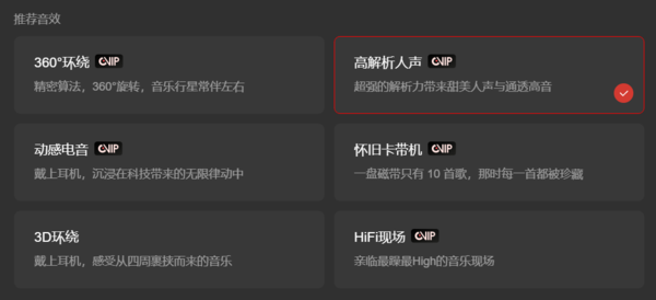 首先要说明的一点是鲸云音效有部分是需要开通黑胶VIP才能使用的,但如果想要免费使用其它音效也是可以的,下面就让小编来列举一下各种音效的感受吧。