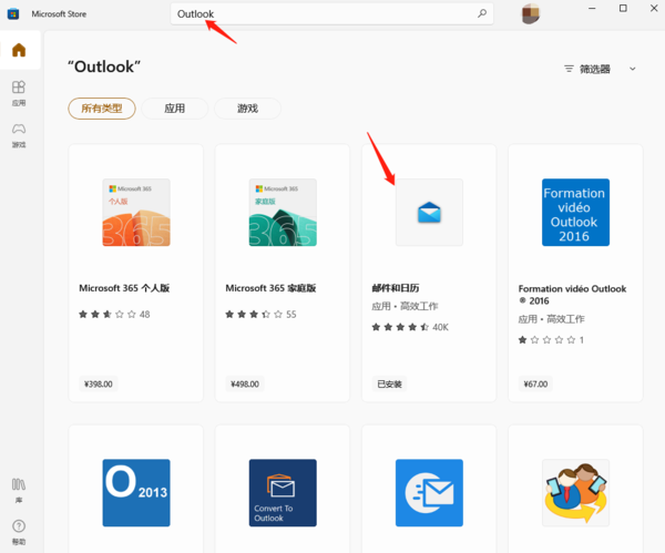 我们在电脑中找到Microsoft?store(微软商店),在里面搜索【邮件】;以此可以先检查一下我们电脑中是否有Outlook客户端;如果有,我们可以在此快速打开Outlook客户端;如果没有,我们也可以在此直接下载。