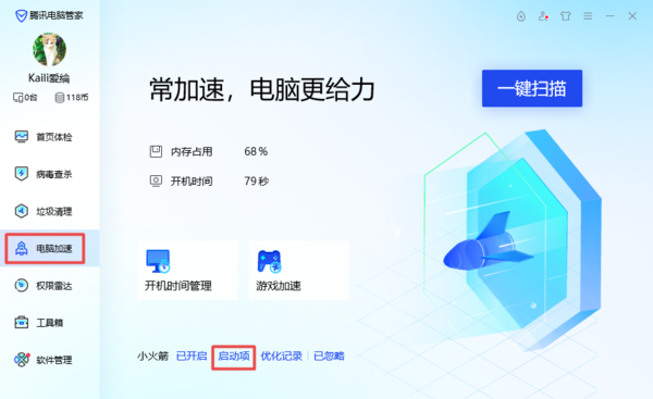 而腾讯电脑管家除了可以设置自己这款软件在电脑开机时是自启还是不自启的状态外,还可以设置电脑上其他管家的自启与否的选项,具体的设置方法,一起往下面学习吧。