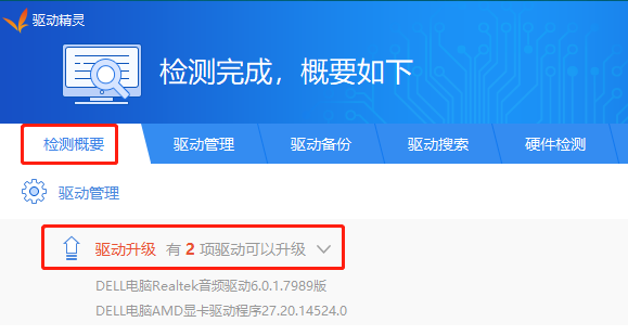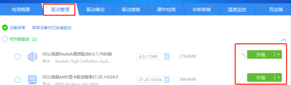 如果不想进行全面检测,也可以在首页点击驱动管理,直接查看电脑上的驱动信息,进行驱动修复或升级。