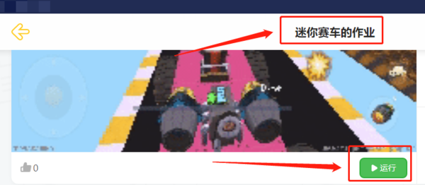 想要体验其他玩家分享的作品,就回到迷你世界迷你编程主页面,在精选作品一栏中选择想要体验的作品。进入作品介绍页面后,点击画面视窗右下角的“运行”键,就能跳转到作品玩法界面开始体验了。