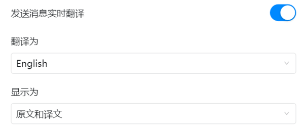 3、在接收信息实时翻译和发送信息实时翻译这两个选项的右侧,分别有一个对应的开关按钮。打开后我们就可以设定所要翻译的对象语言。