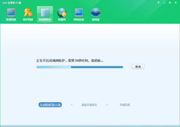 3、然后软件就会进行局域网防火墙的开启,开始需要一些时间,我们耐心等待一会儿。