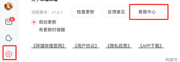 2、在本地网络没有问题,更换线路和关闭弹幕也无法解决卡顿的话,最后我们还可以直接向哔哩哔哩的官方客服进行反映,打开主界面的设置菜单栏,之后点击客服中心即可。