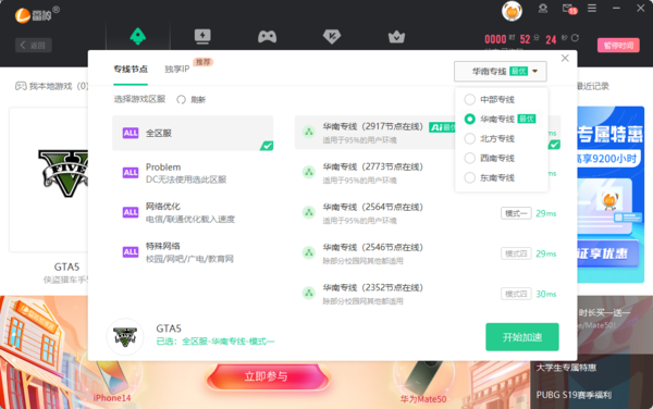 介绍完了雷神加速器能不能给gta5游戏进行加速的内容后,那么既然它可以给gta5游戏加速,那么在进行游戏加速时,我们应该怎样使用海外节点进行加速呢,继续往下看吧。