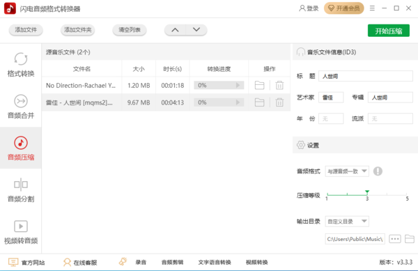 根据财神爷站小编的亲自使用以及查找本站的资料内容来看,既能合并音频文件又能压缩音频文件的电脑软件是闪电音频格式转换器,该软件拥有压缩和合并这两种功能,让你使用1款软件就能够解决2种处理需求。