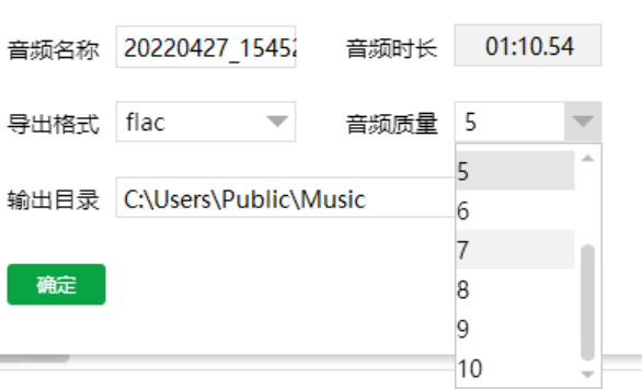 2、再弹出的设置栏目内,我们可以选择导出音频格式和音频质量等级。如果想要无损音质的格式,我们可以选择flac,质量等级拉高。如果对文件体积有要求不想太大,可以选择wma格式,以上两种格式都比MP3格式更能降低音质损失,文件体积也会变大。