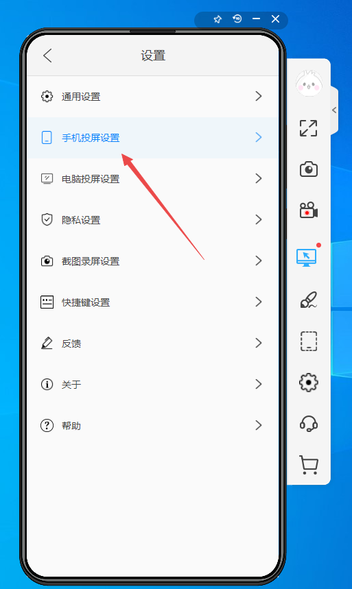 2、然后在设置界面中,点击选择【手机投屏设置】选项。