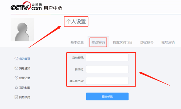 因为央视影音和央视网的账号是互通的,想要更改账号密码,可以在央视网用户中心里的个人设置界面,选择修改密码,更改设置好新密码后,点击提交修改就完成了。