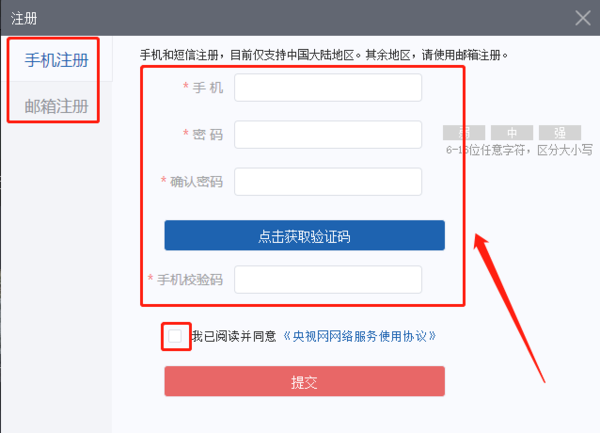 跳转到注册界面后,可以选择手机注册或者邮箱注册,小编这里选择手机注册,填上相应的信息,点击下发的“提交”键就注册完成了。