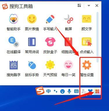 第一步:打开电脑点击输入法的工具箱,在弹出菜单中点击属性设置。