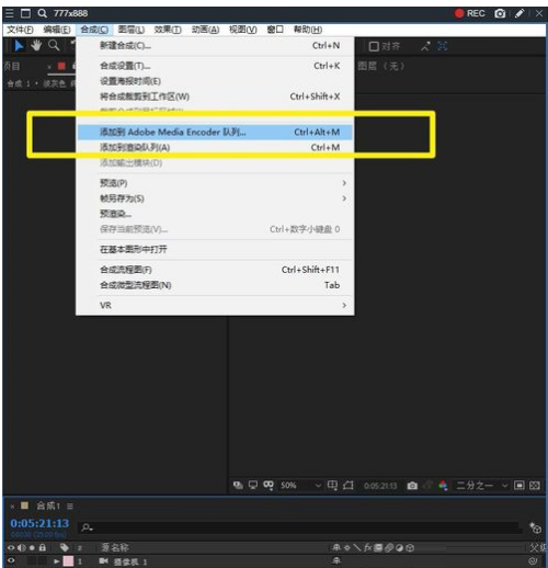 第四步:点击页面左上角菜单栏中的合成,选择Adobe Media Encoder。