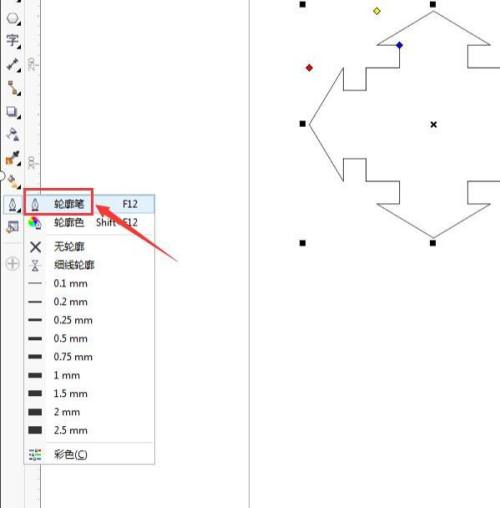 第三步:点击轮廓笔工具,打开轮廓线设置窗口。