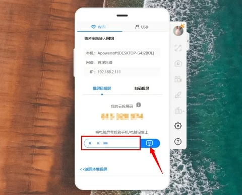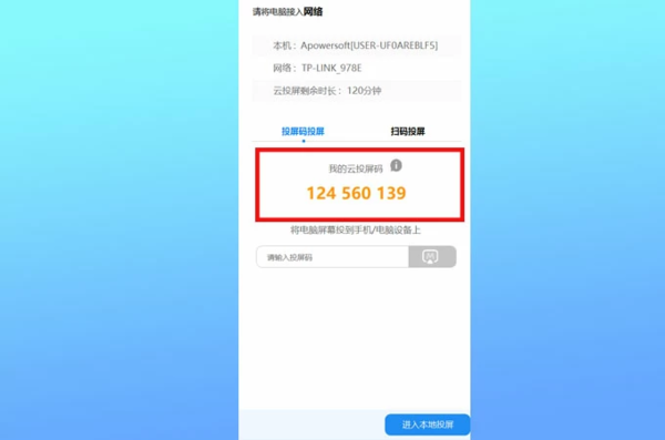 2.进入到云投屏界面后,我们就可以看到【我的云投屏码】了。