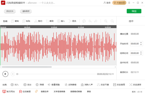 能无缝剪辑音频的软件是闪电音频剪辑软件。因为,在使用闪电音频剪辑软件的过程中,我们可以清晰的看到“音波图”,这样的话,我们无论是在对单段音频进行裁剪,还是将多段独立的音频合并到一起,都可以做到无缝剪辑,以至于不会在播放的时候出现尴尬的“间隔”。