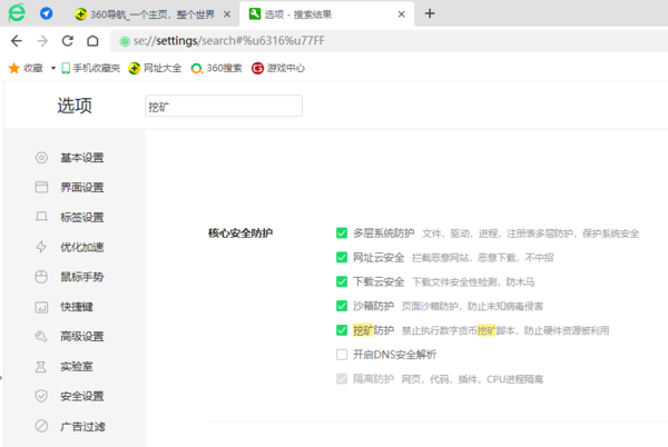 相关内容:360浏览器如何开启挖矿防护