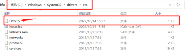 1、找到C:\Windows\System32\drivers\etc目录下的hosts文件;