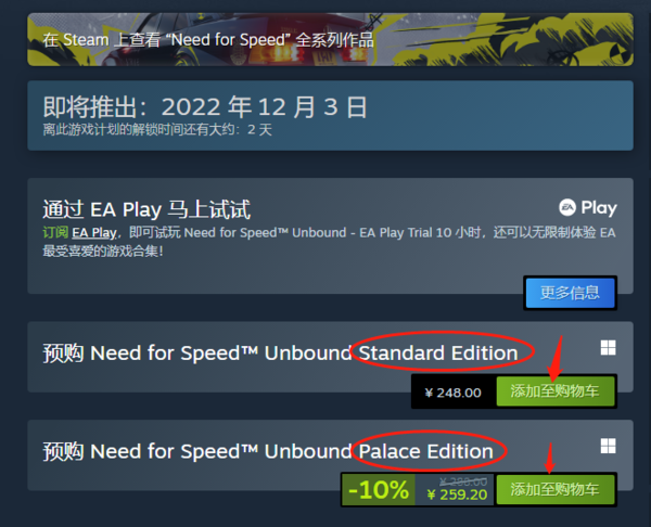 steam极品飞车22预购价是多少