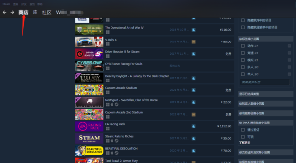 第一步,我们打开steam,点击上方【商店】按钮,进入到商店界面。