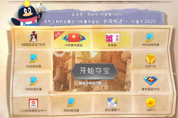优惠二:我们在该活动页面购买豪华蓝钻之后,还可以进行抽奖,有机会获得蓝钻宝宝、成长值、Q币,甚至是19年的超级豪华蓝钻,简直是太诱人了。