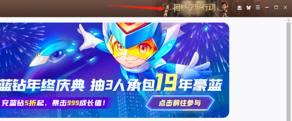 2、接着,我们可以看到【蓝钻年终庆典】的推广,点击推广中的【点击前往参与】就能轻松跳转到QQ游戏双11特惠蓝钻界面了。