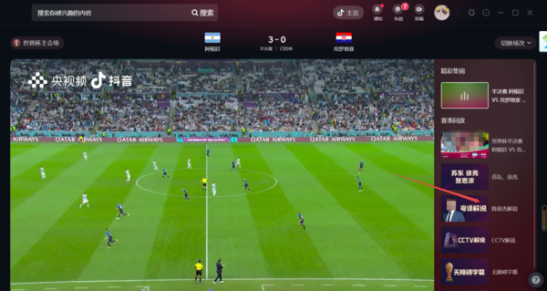 2022世界杯粤语解说视频去抖音电脑端软件上就能够观看,同时在这款软件上,我们还可以观看比赛的现场原声视频,以及其他解说员解说的比赛视频。
