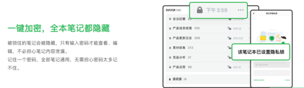 1、印象笔记提供一键加密功能,一个密码可管理全部笔记,无需担心密码过多而导致笔记打不开的情况发生。
