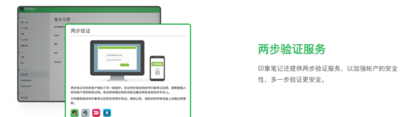 2、两步验证服务让账户和笔记的安全性又多了一分,账户密码和验证码的联动让用户笔记安全得以受到保护。