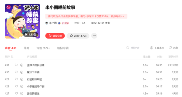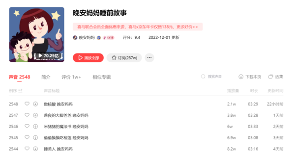 喜马拉雅深耕有声读物数年,各类用户的需求早已烂熟于心,这其中当然包括低龄小朋友们的阅读听书需求了。