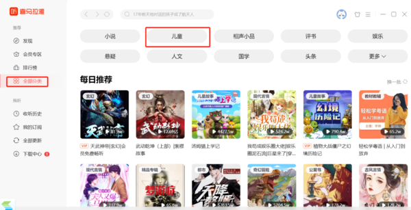 在书籍名称前带有【VIP】字样的是需要开通喜马拉雅VIP才可听的书籍,而没有则代表免费听取。小编观察到在儿童板块中的大部分书籍都是免费听取的,各位宝爸宝妈可以放心下载体验。