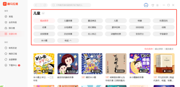 1、我们打开喜马拉雅点击左侧【全部分类】——【儿童】。